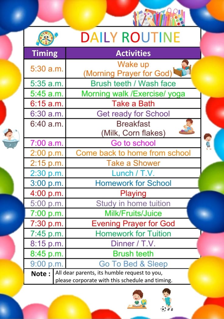 ✔ Morning and bedtime routines