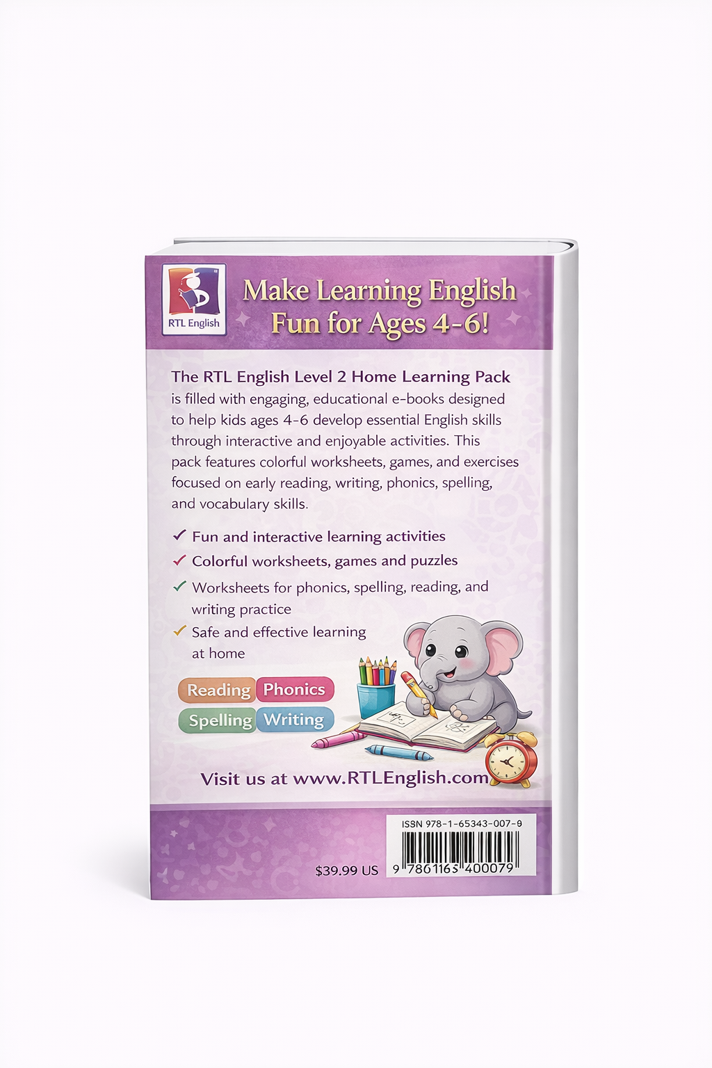 The RTL English Level 2 Home Learning Pack for Ages 4–6 is an engaging educational resource designed to help young learners develop essential English language skills in a fun and interactive way.